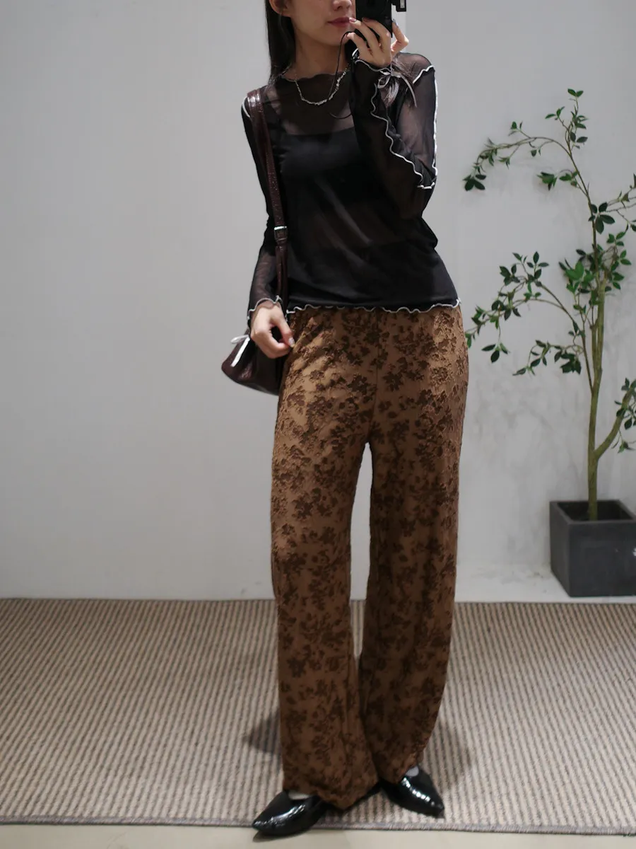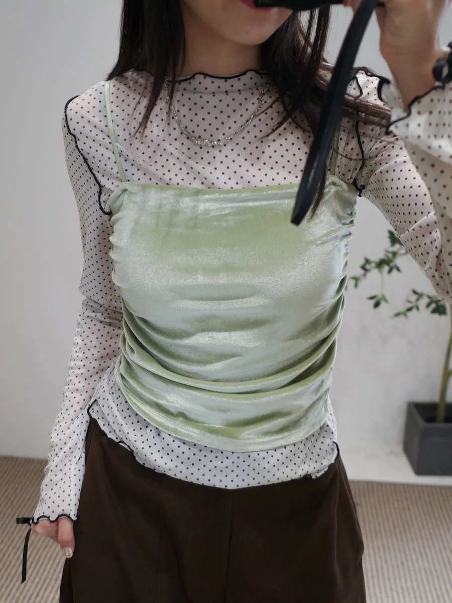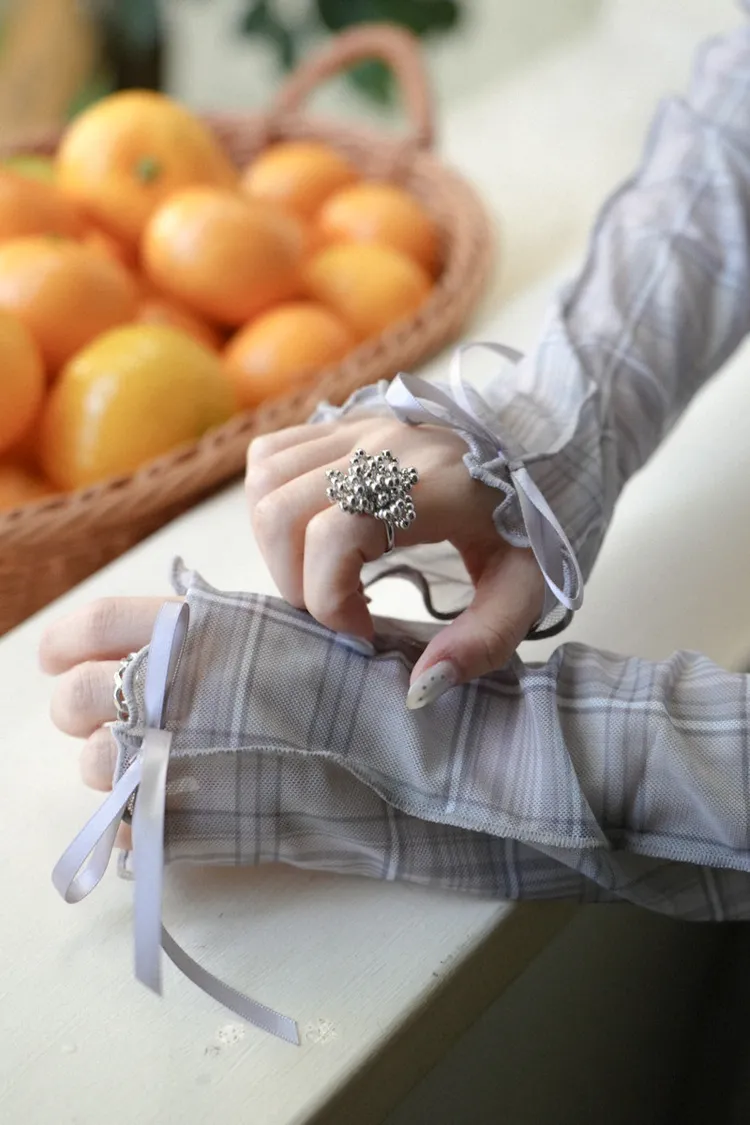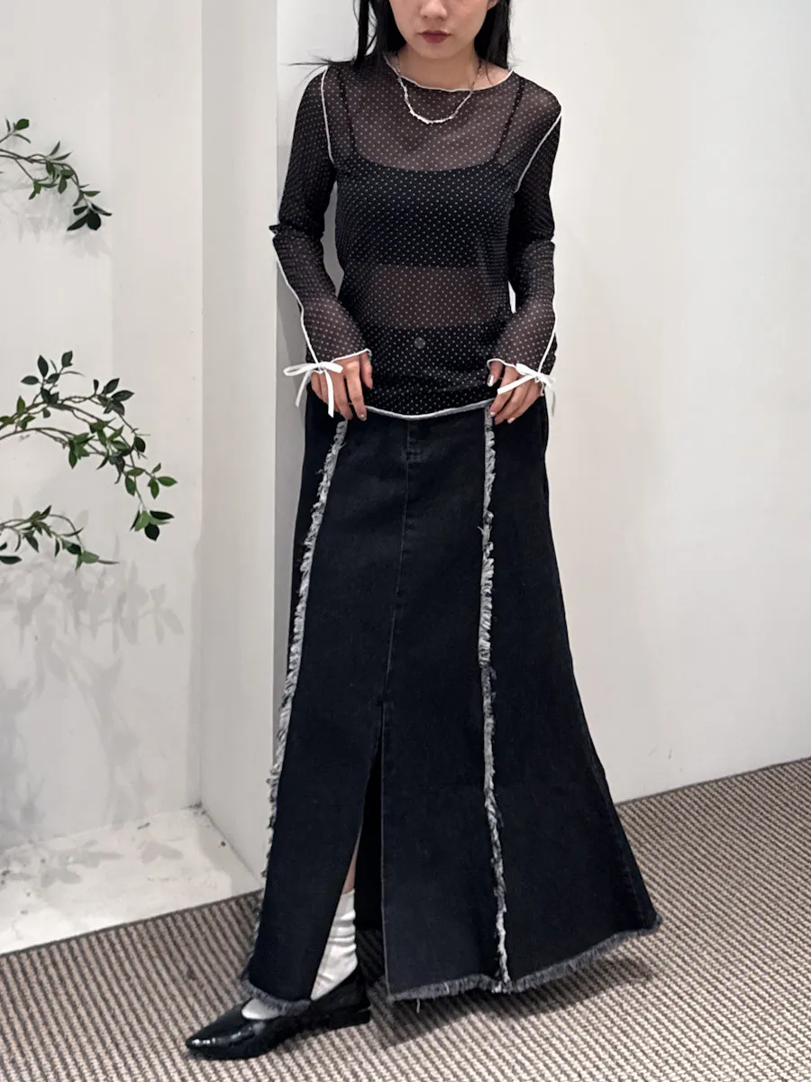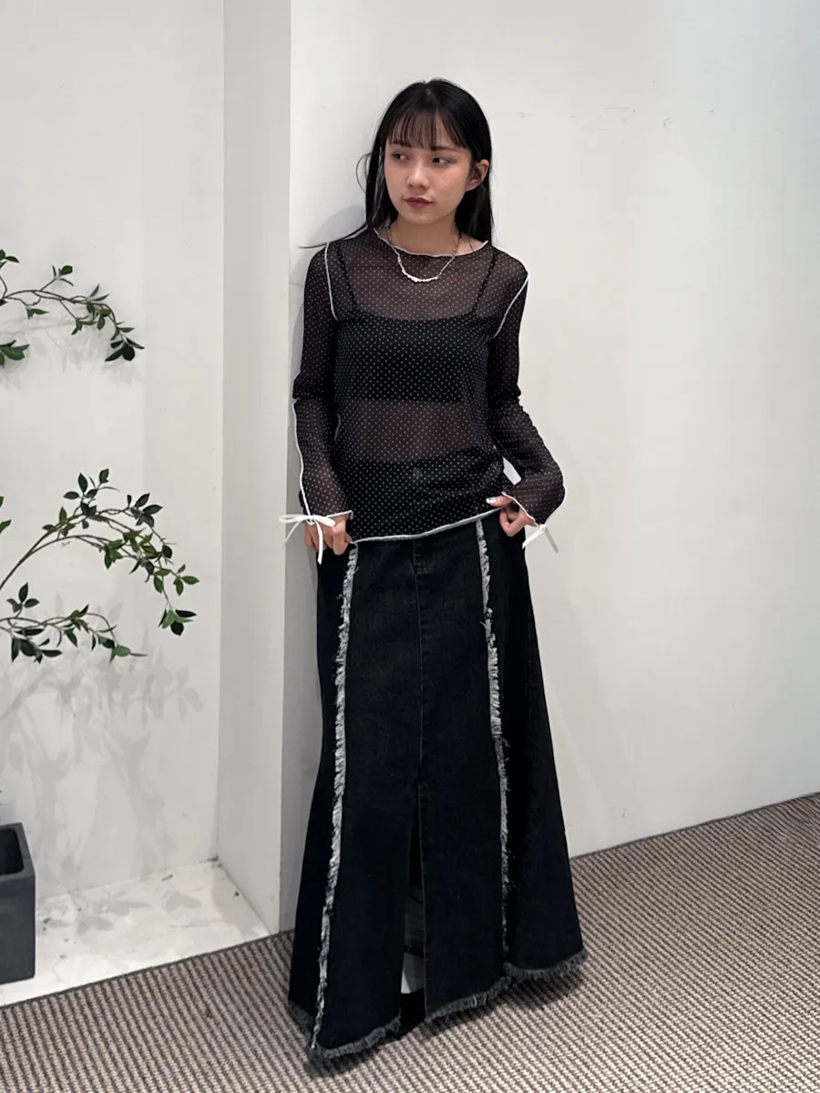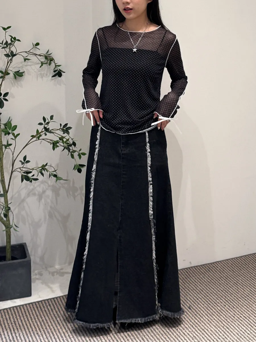 日系線條透膚造型緞帶長袖上衣2.0 7color