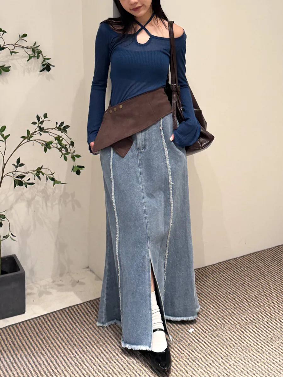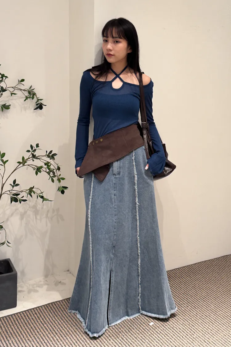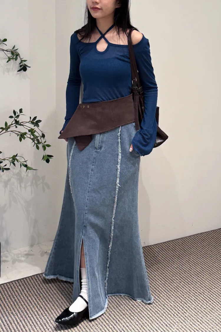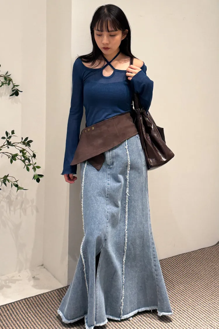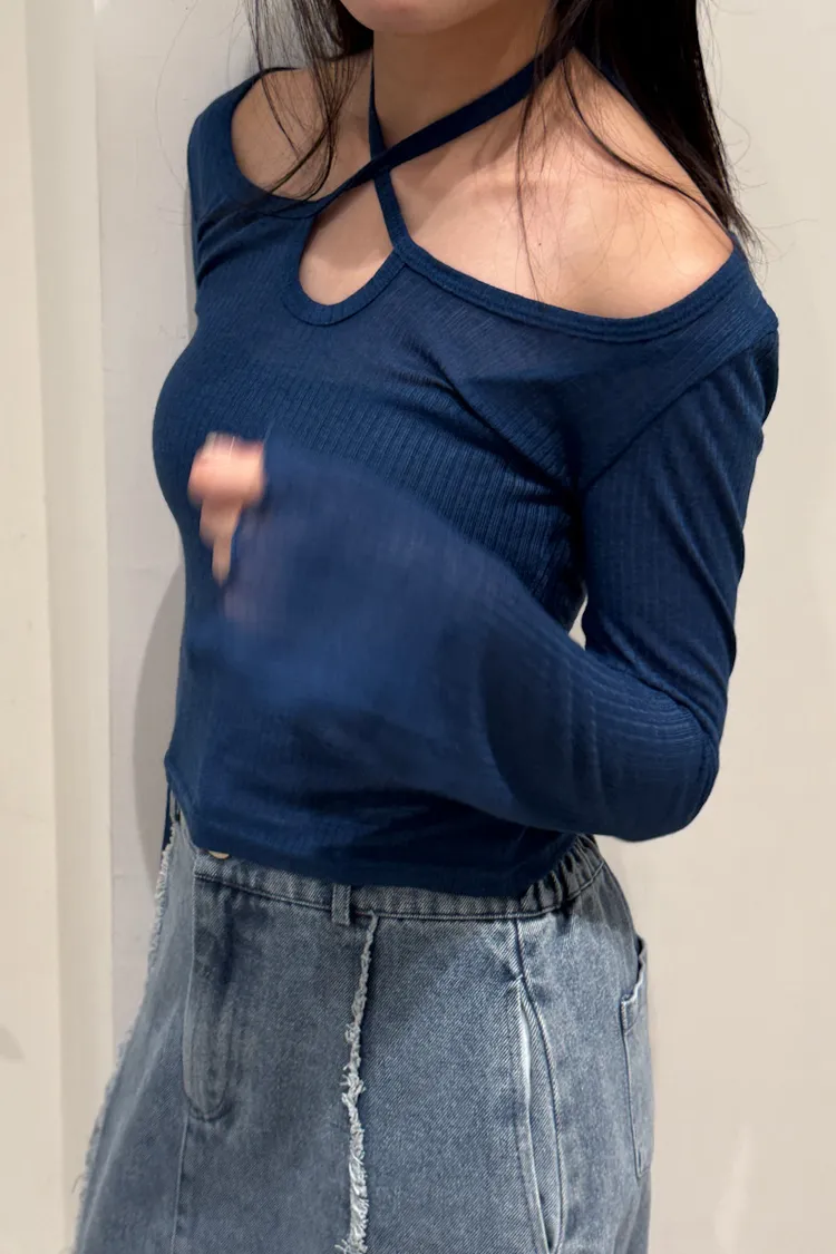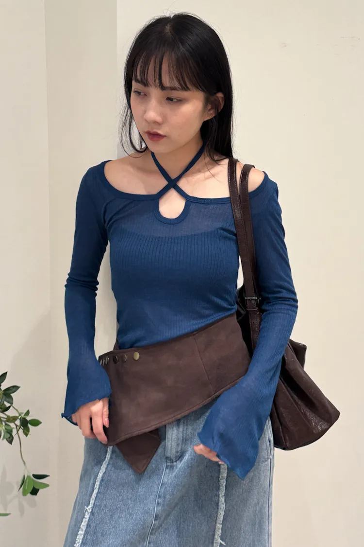 顯白色系多way綁帶寬領上衣