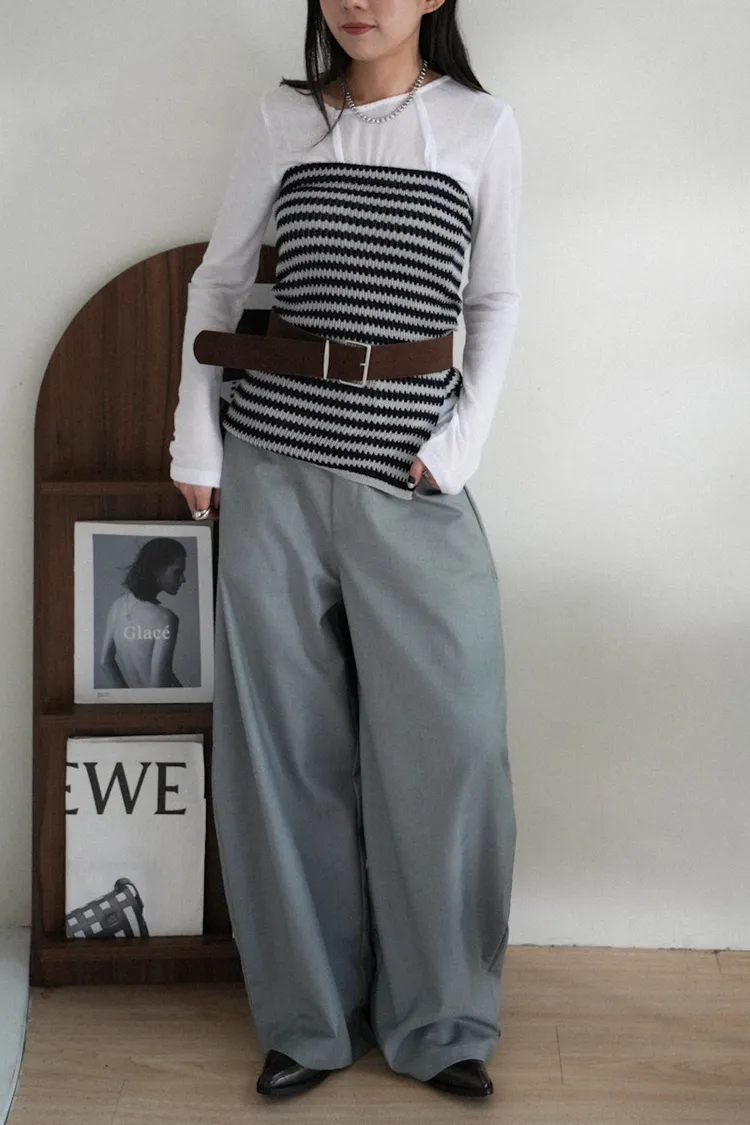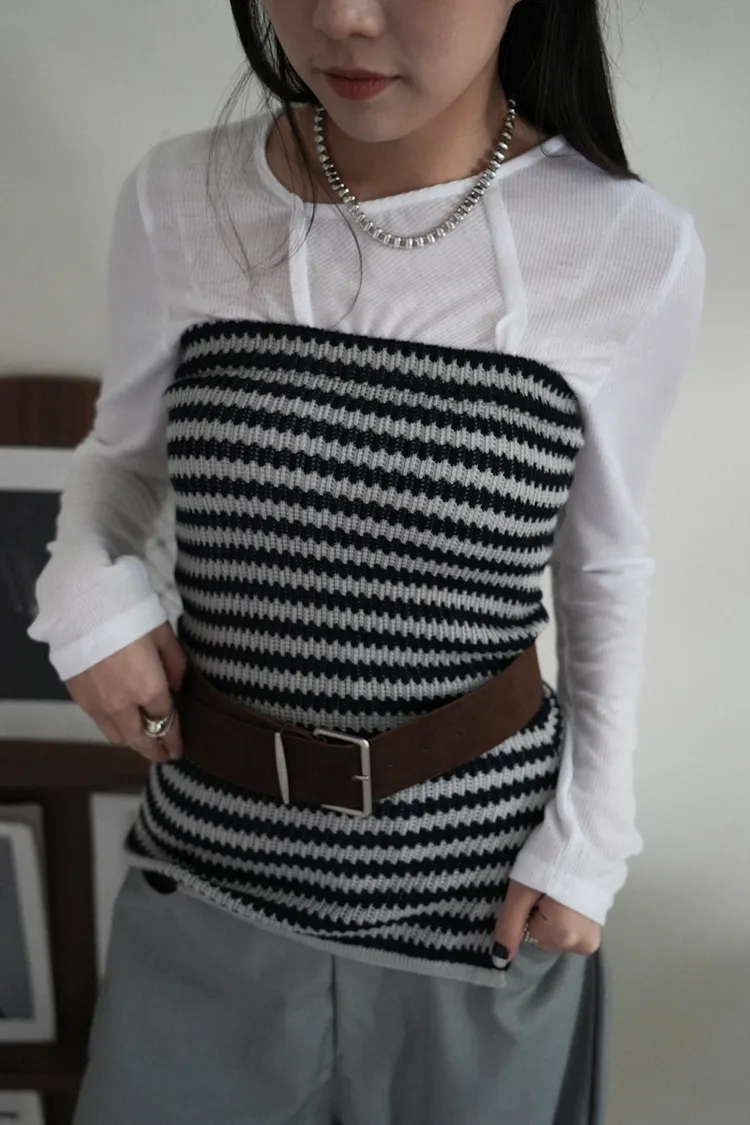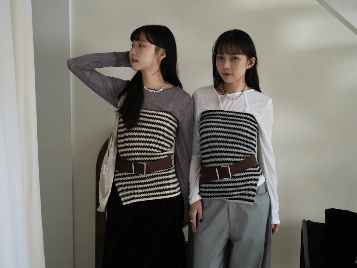 享受浪漫秋冬針織平口附皮帶上衣 2color