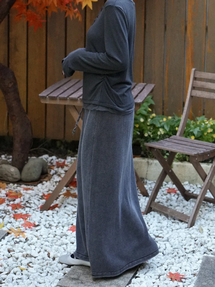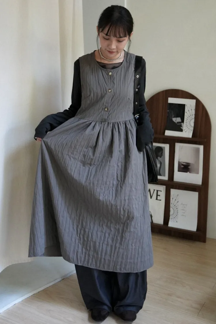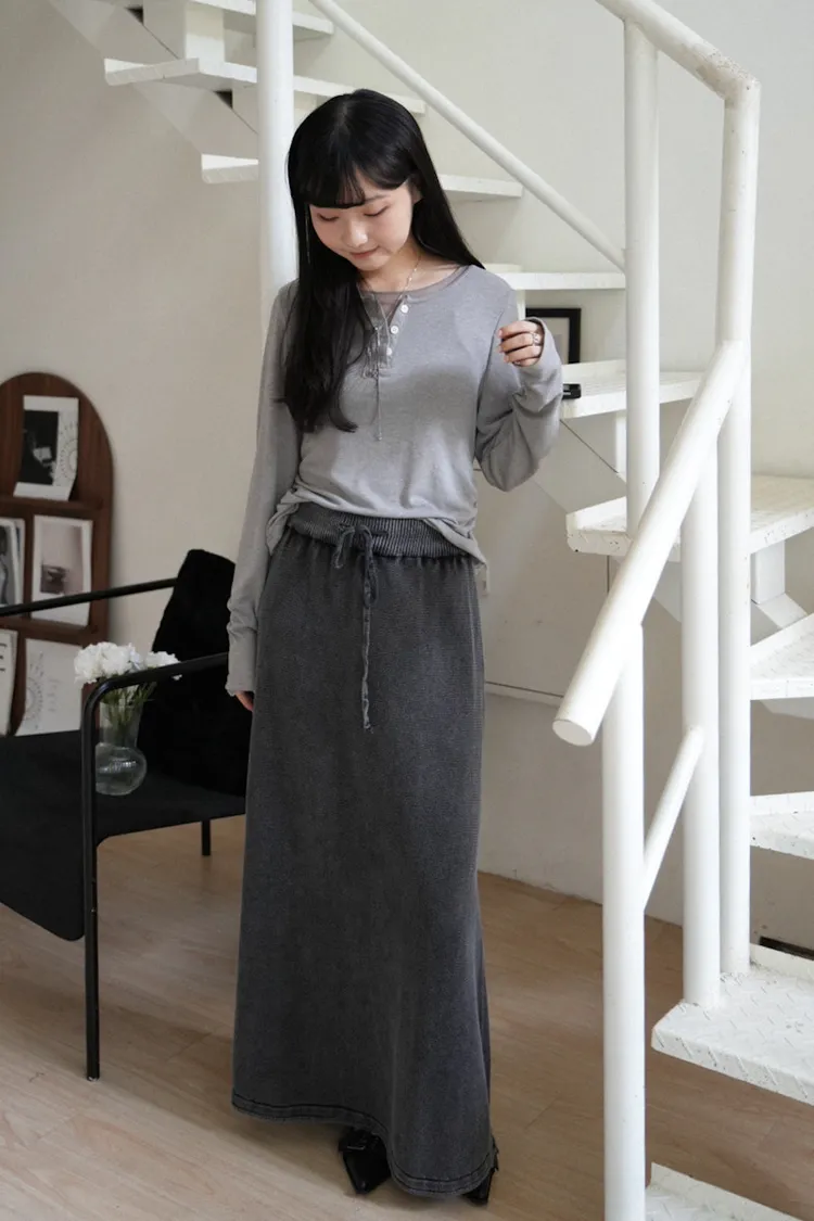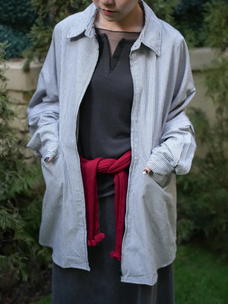 嫩Q拼接紗排釦側抓摺長袖上衣 3color