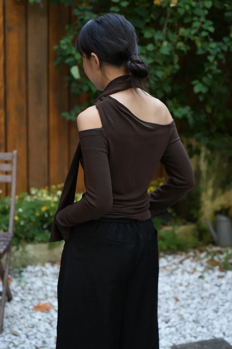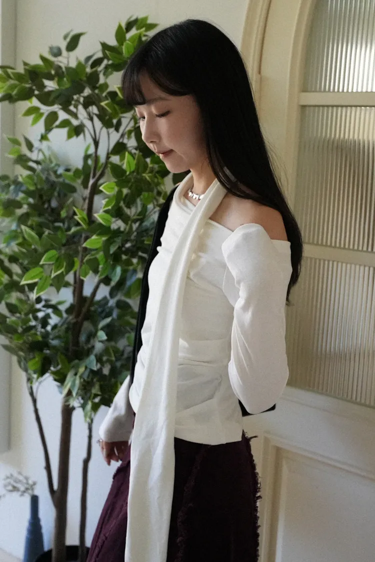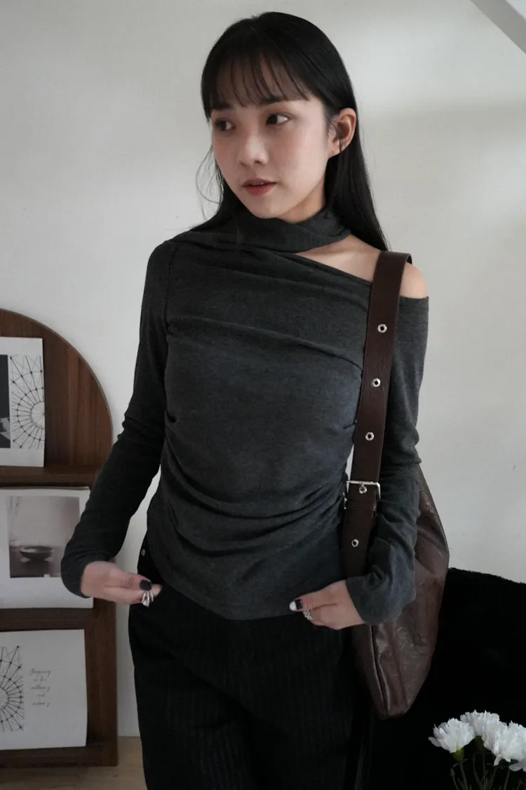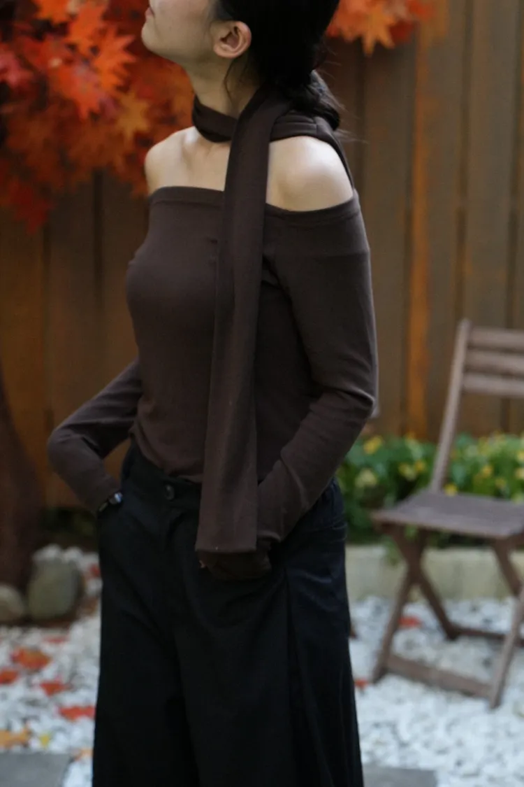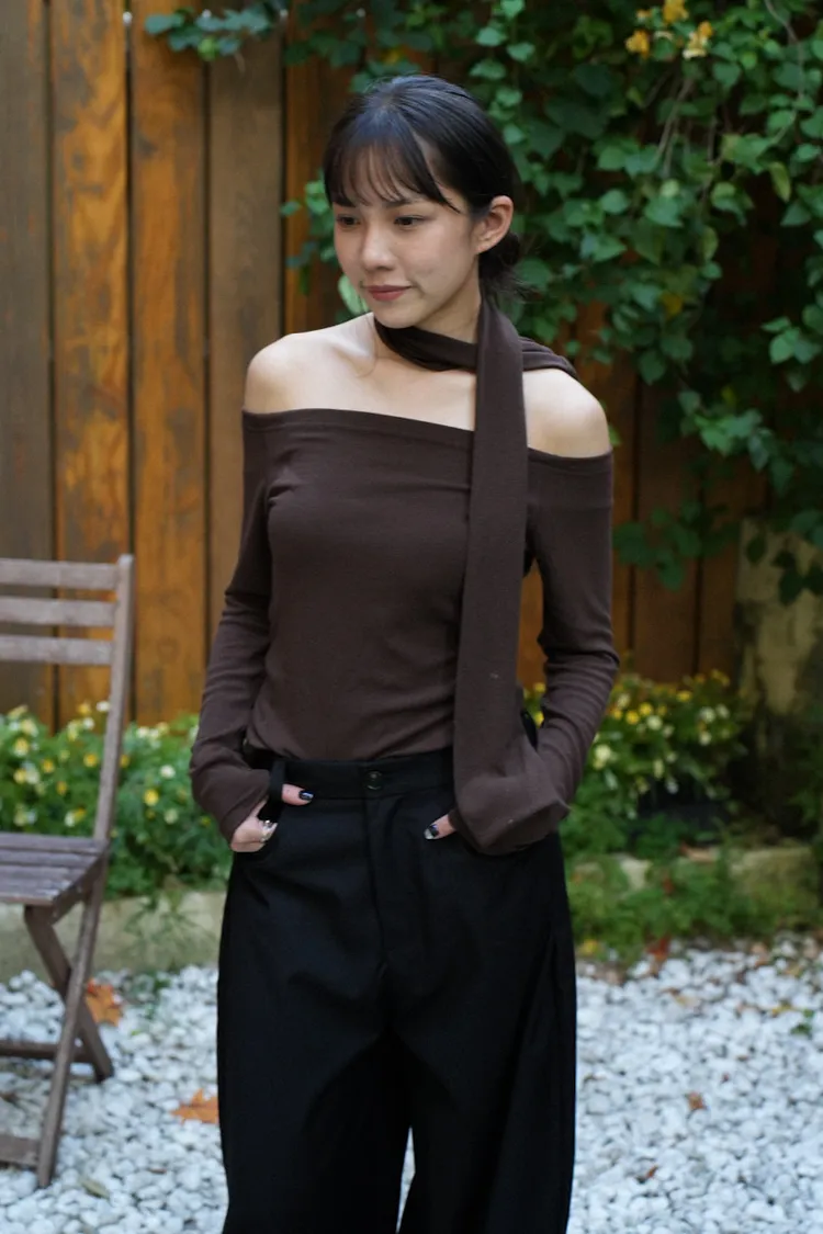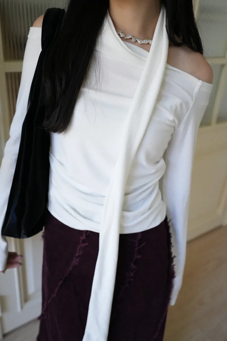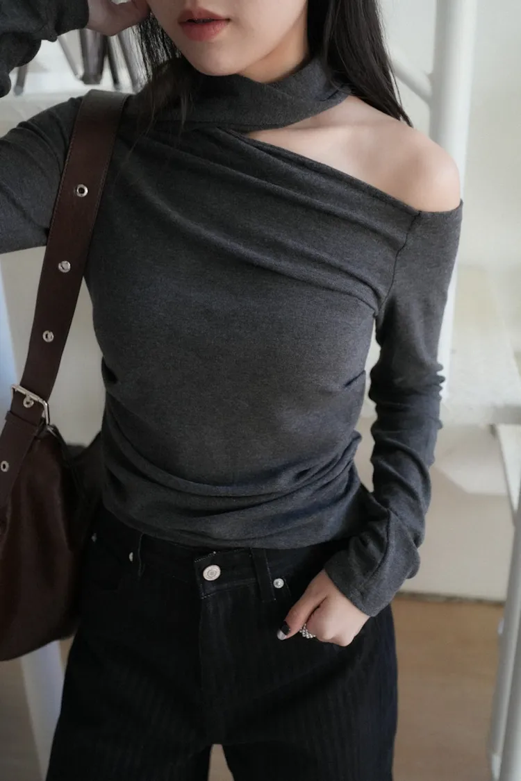 成為許妍之路露鎖骨繞繩彈力上衣 3color
