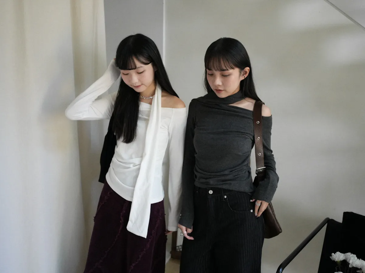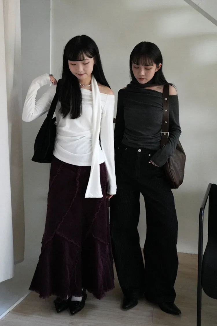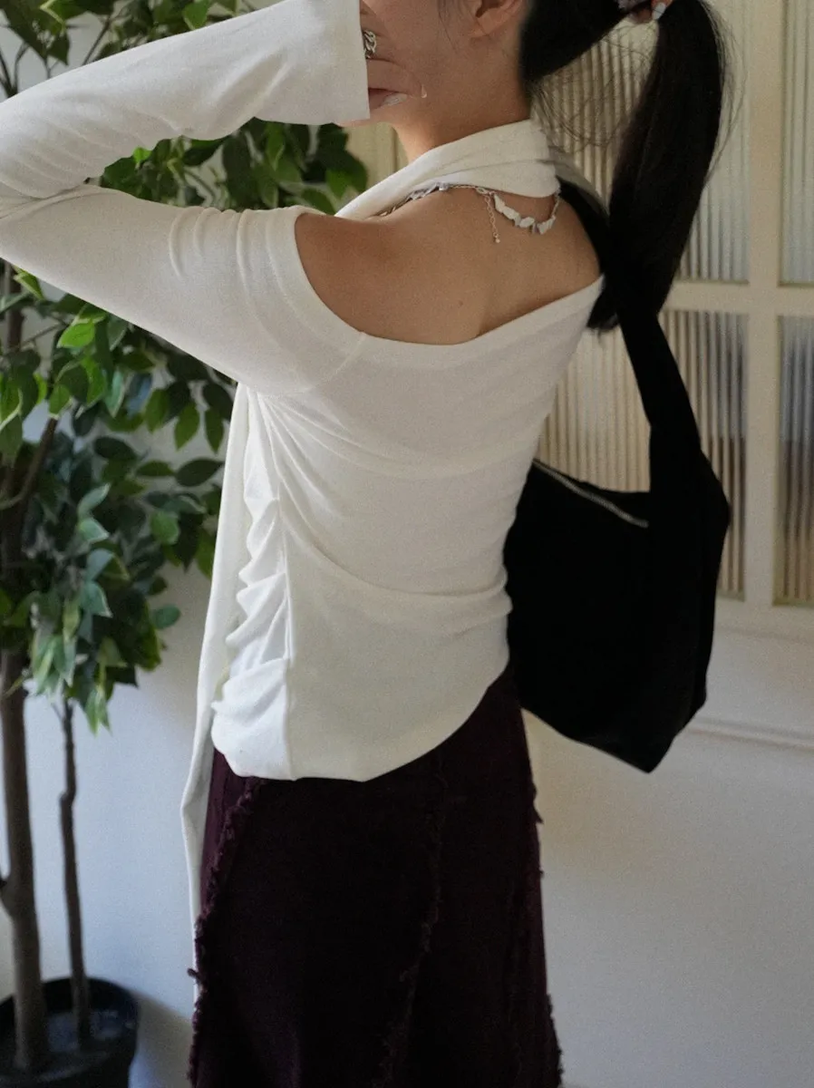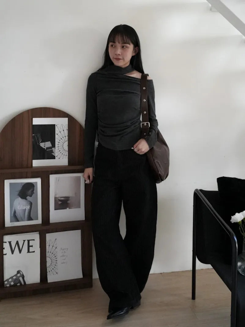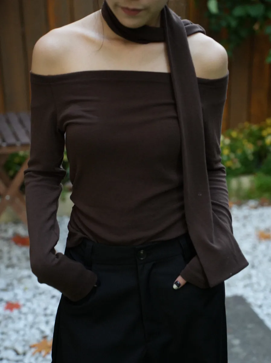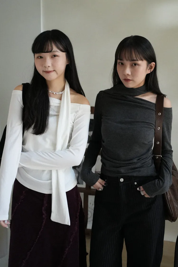 成為許妍之路露鎖骨繞繩彈力上衣 3color
