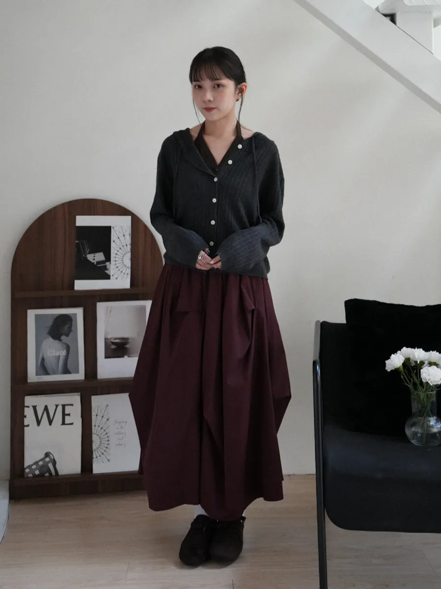 鬆弛日常坑紋羊絨排釦連帽外套 4color