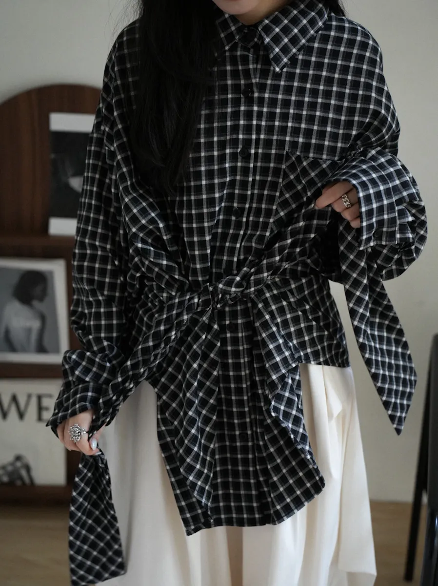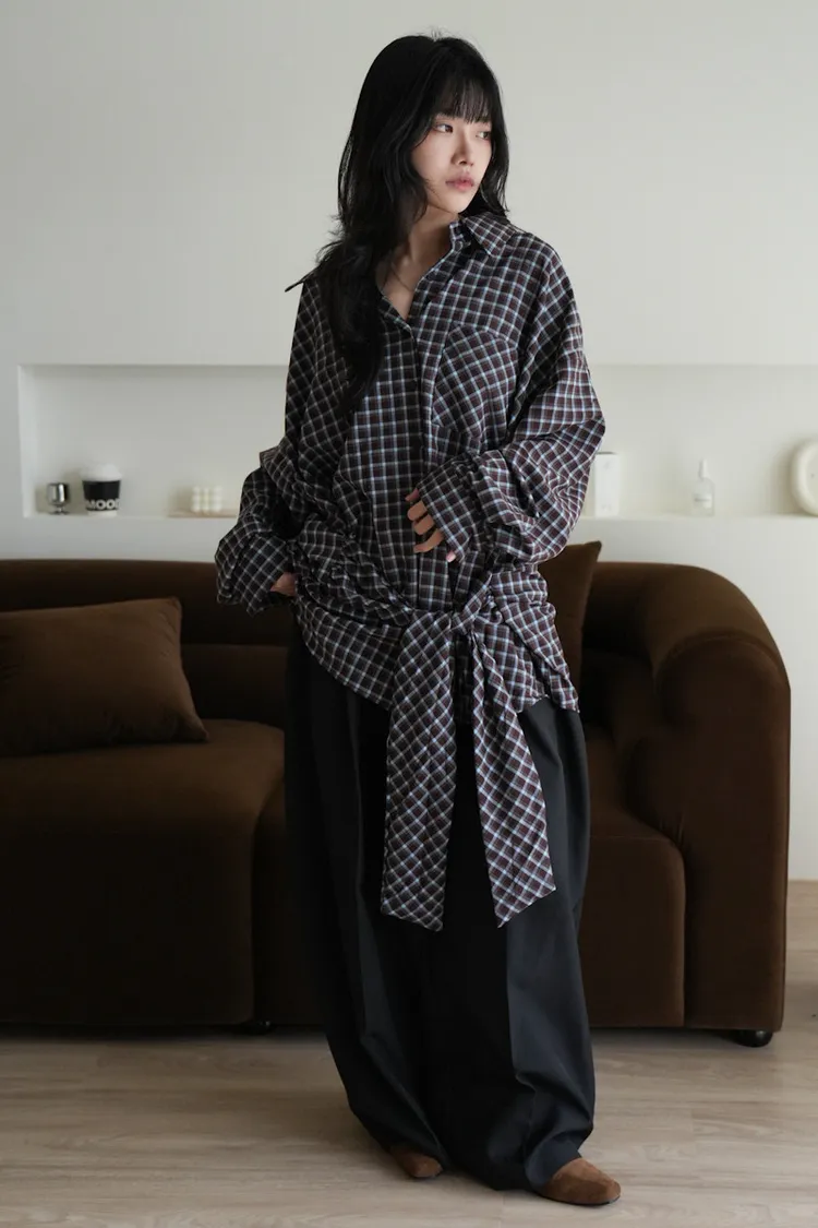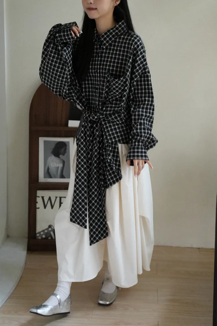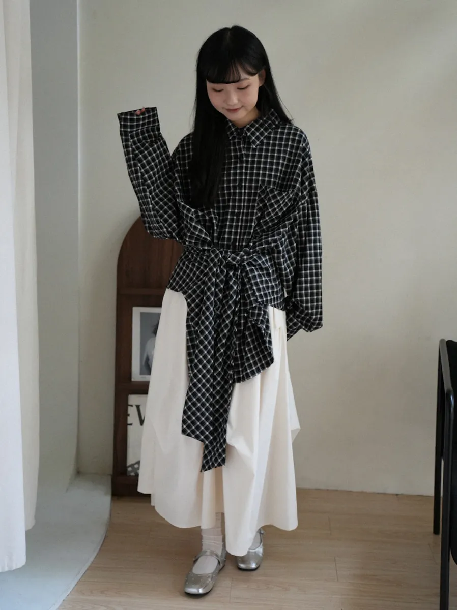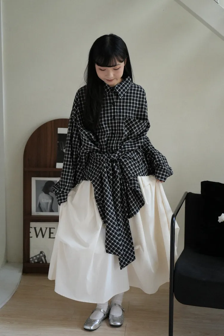 腰有綁帶,下襬圓弧,寬鬆版型,棉花糖可
