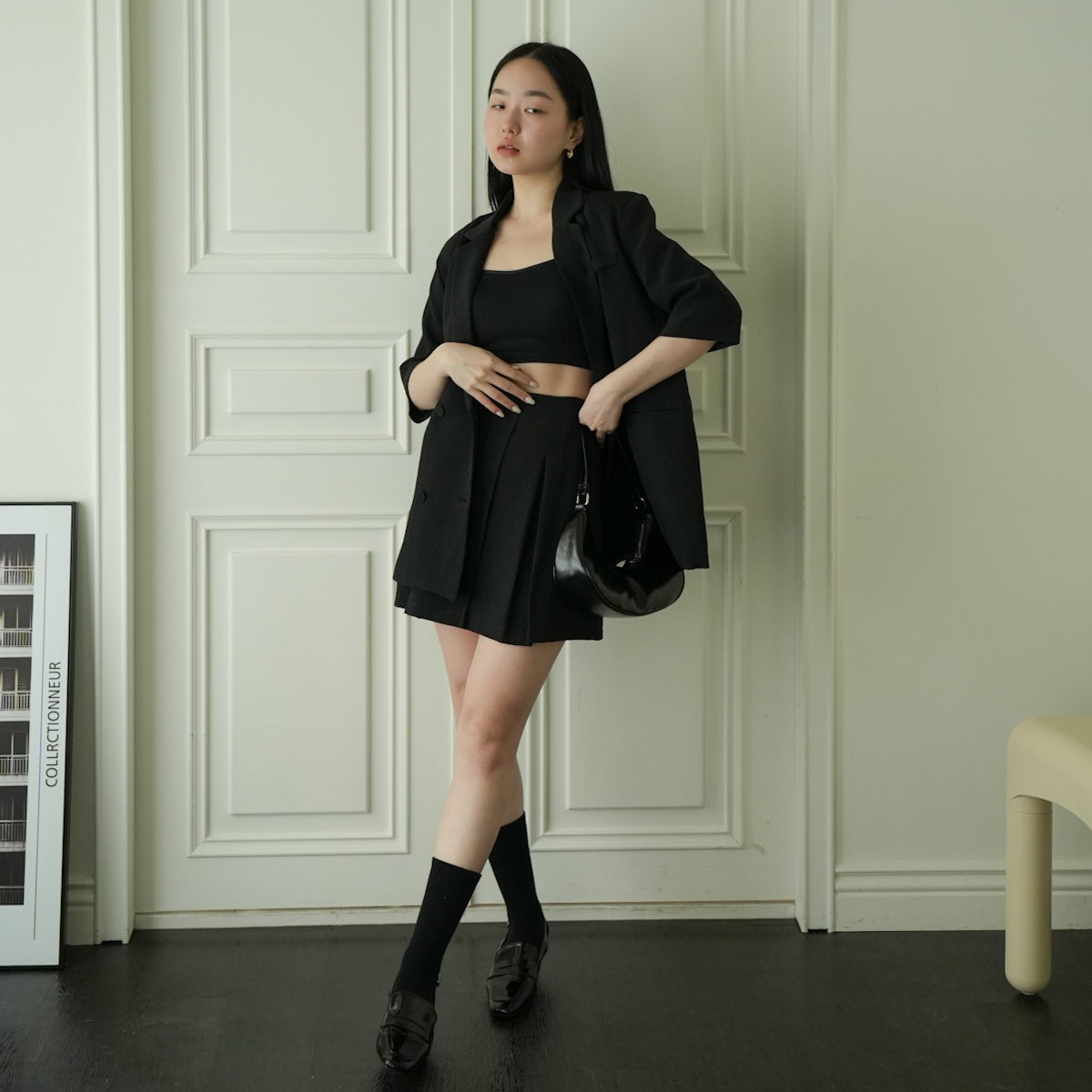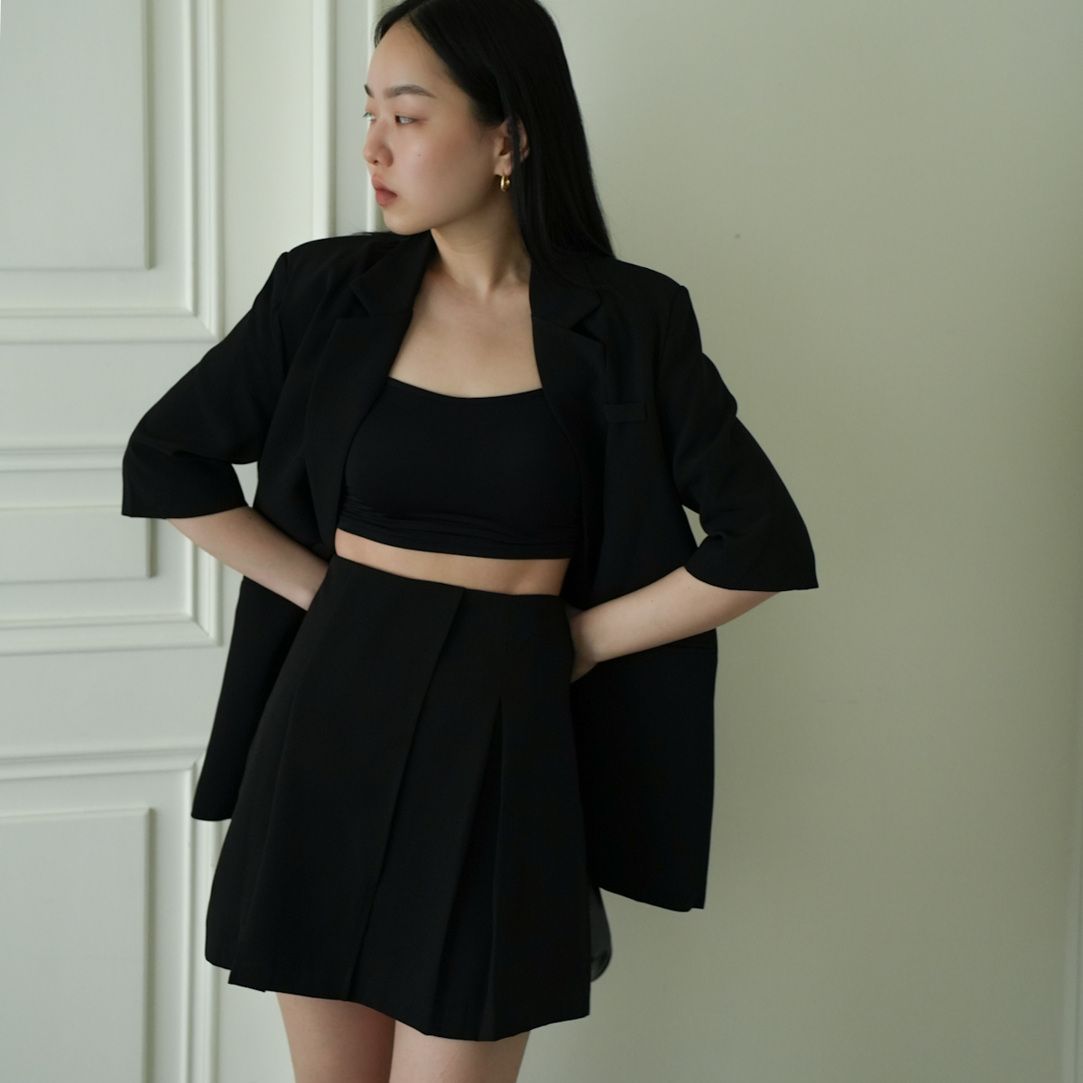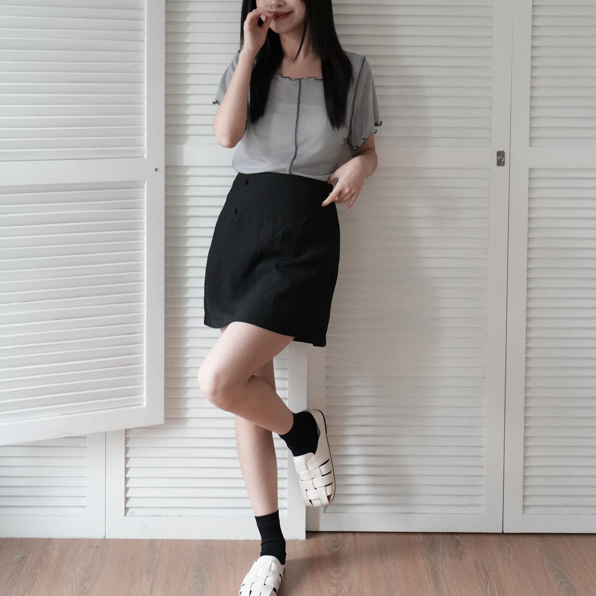 【THE SHOW ROOM MADE】包釦設計單邊斜襬西裝褲裙 3color(可成套)