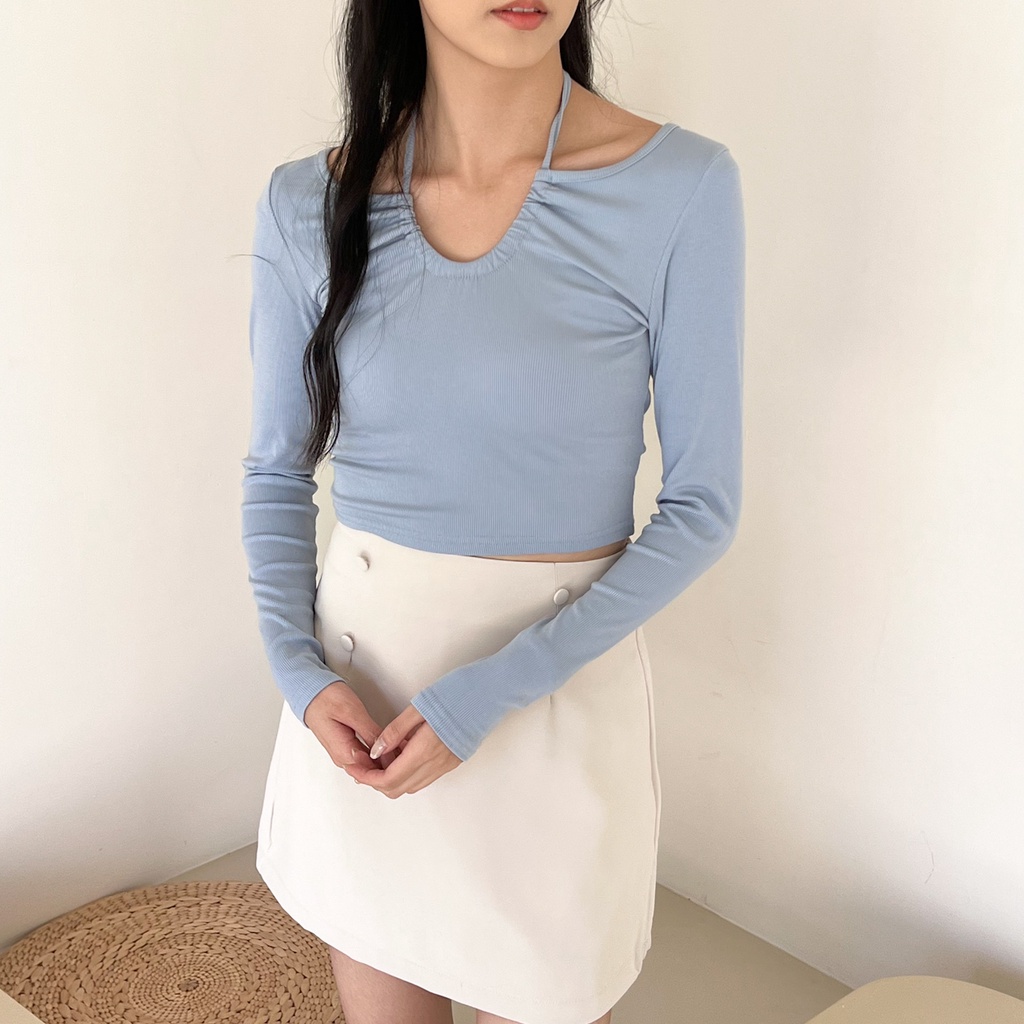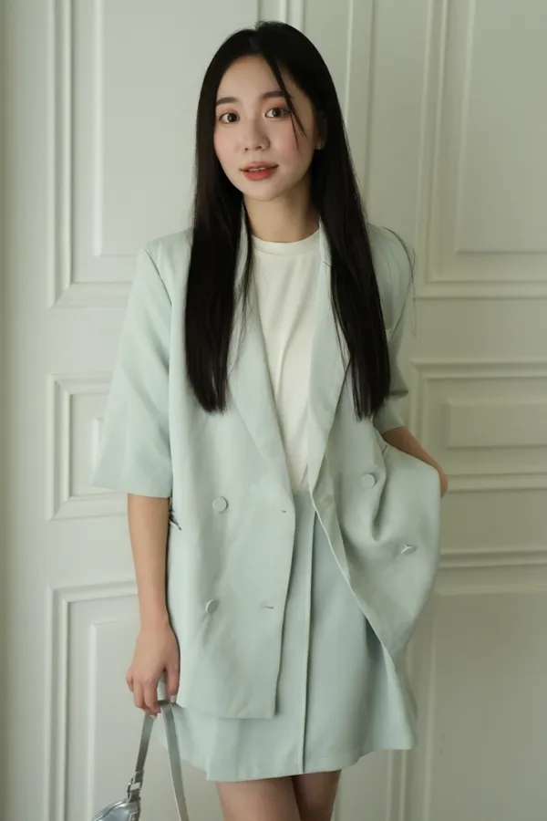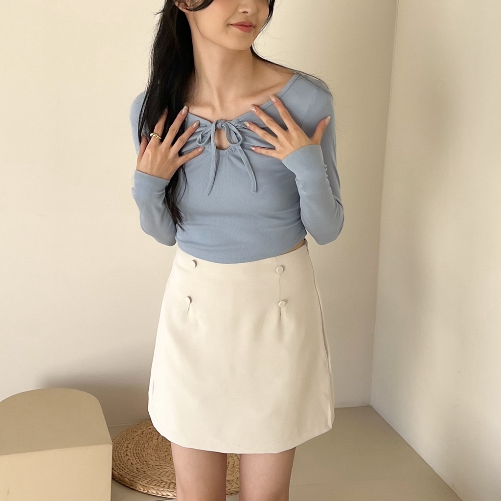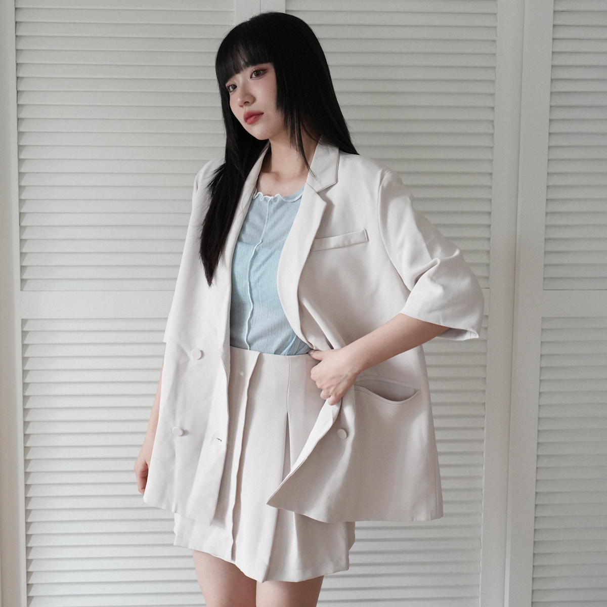 【THE SHOW ROOM MADE】包釦設計單邊斜襬西裝褲裙 3color(可成套)