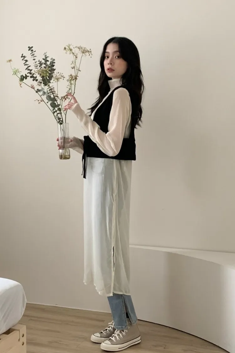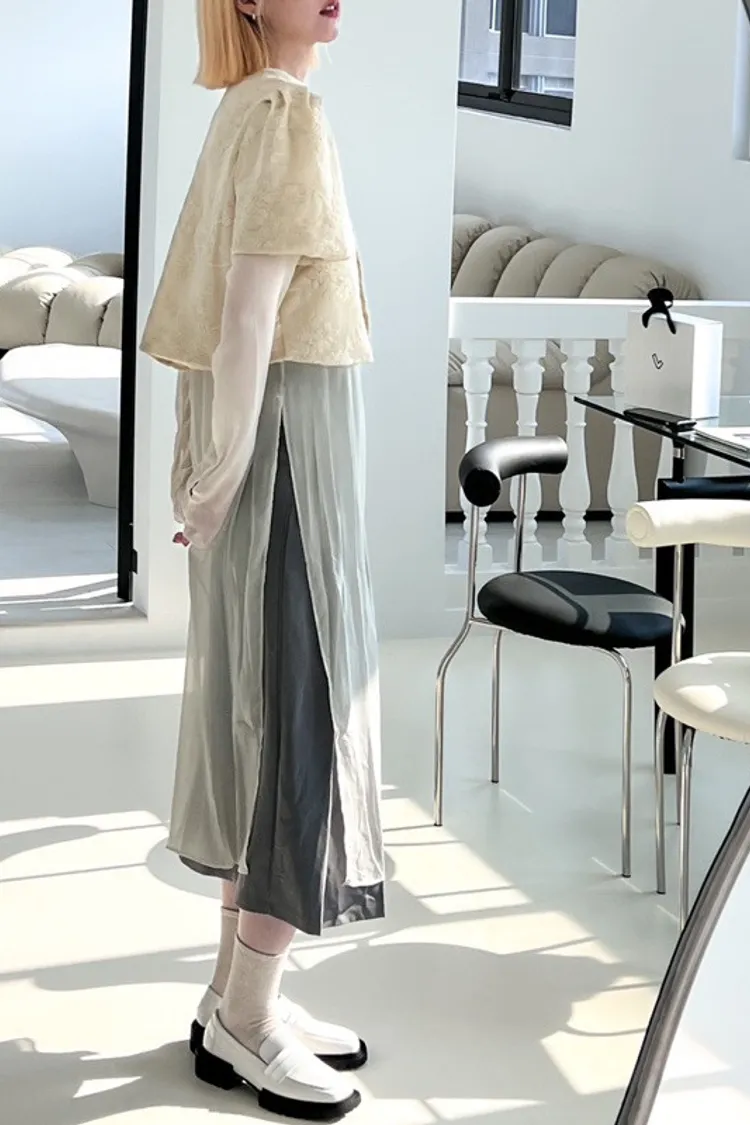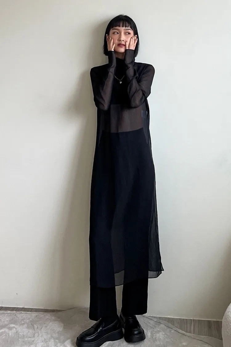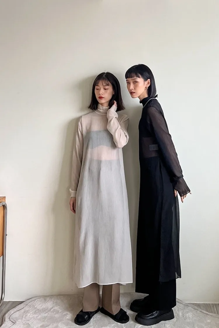 -【SHOWROOM MADE】仙到出水透光微領連身裙 杏candy5 黑kid4