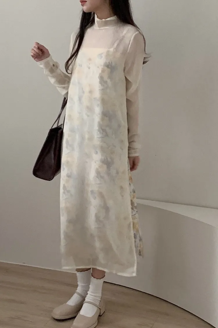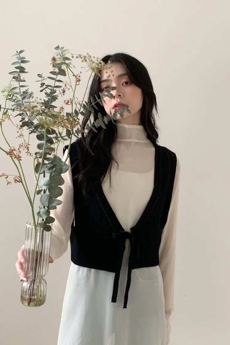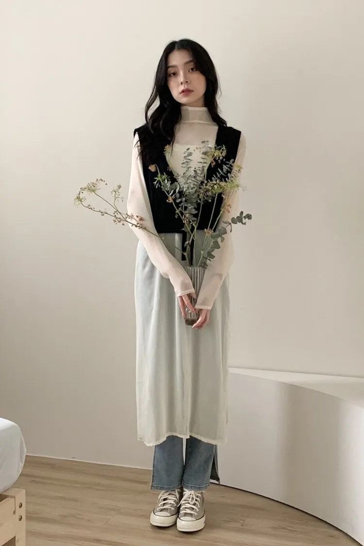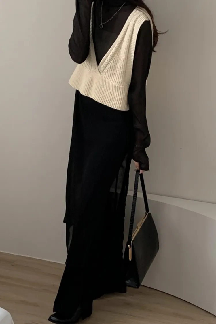 -【SHOWROOM MADE】仙到出水透光微領連身裙 杏candy5 黑kid4